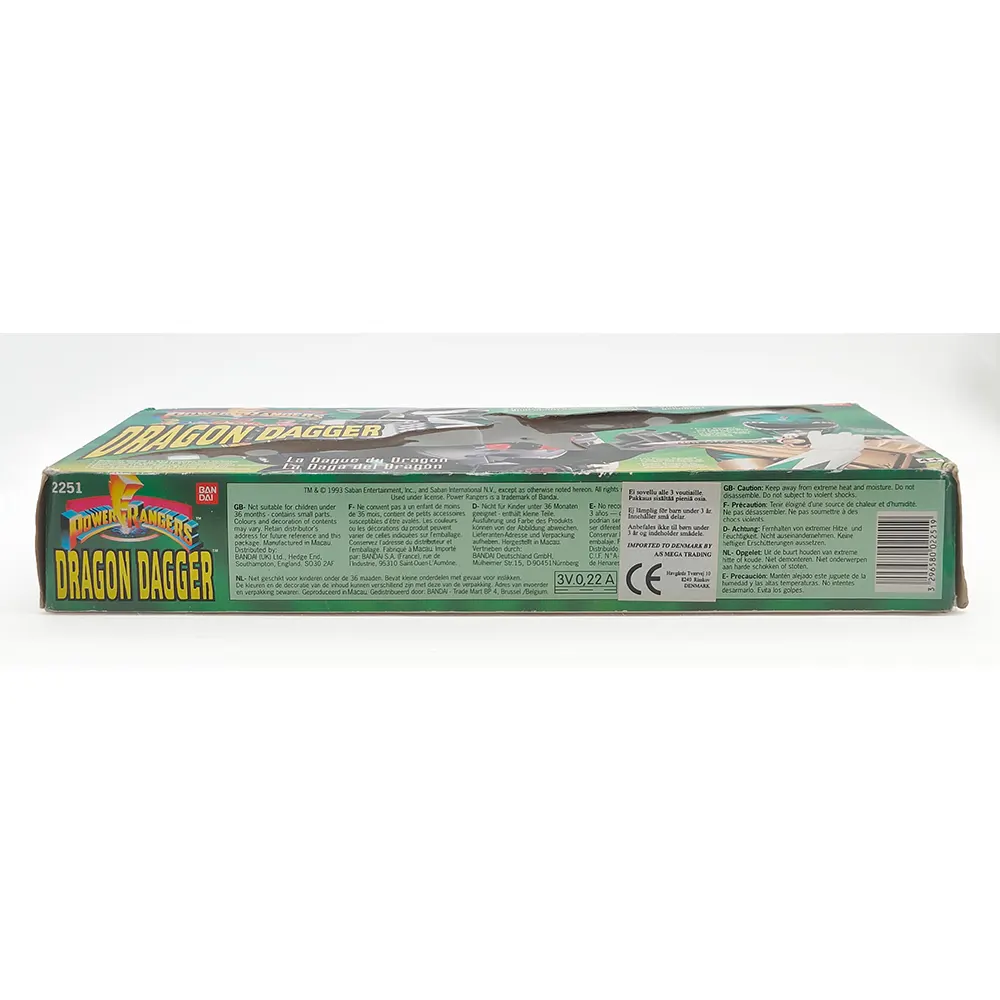 An awesome piece of Power Rangers history – this is the original Bandai Dragon Dagger from 1993! From Mighty Morphin Power Rangers, this premium 12.6-inch replica features authentic electronic sounds. Complete with all parts in its original box, this pre-owned treasure is perfect for serious collectors!