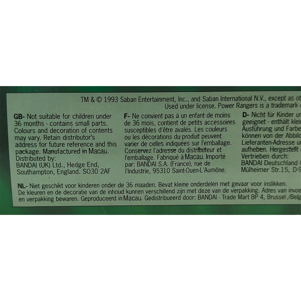 Pre-GPSR item manufactured in 1993. Product support: customer.service@bandai.co.uk