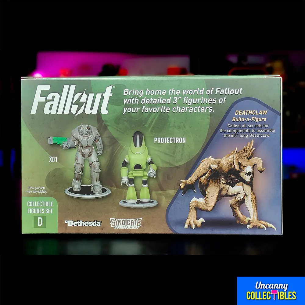 - Set includes two figures: X01 Power Armor and Protectron