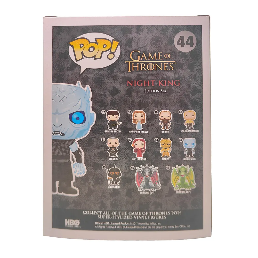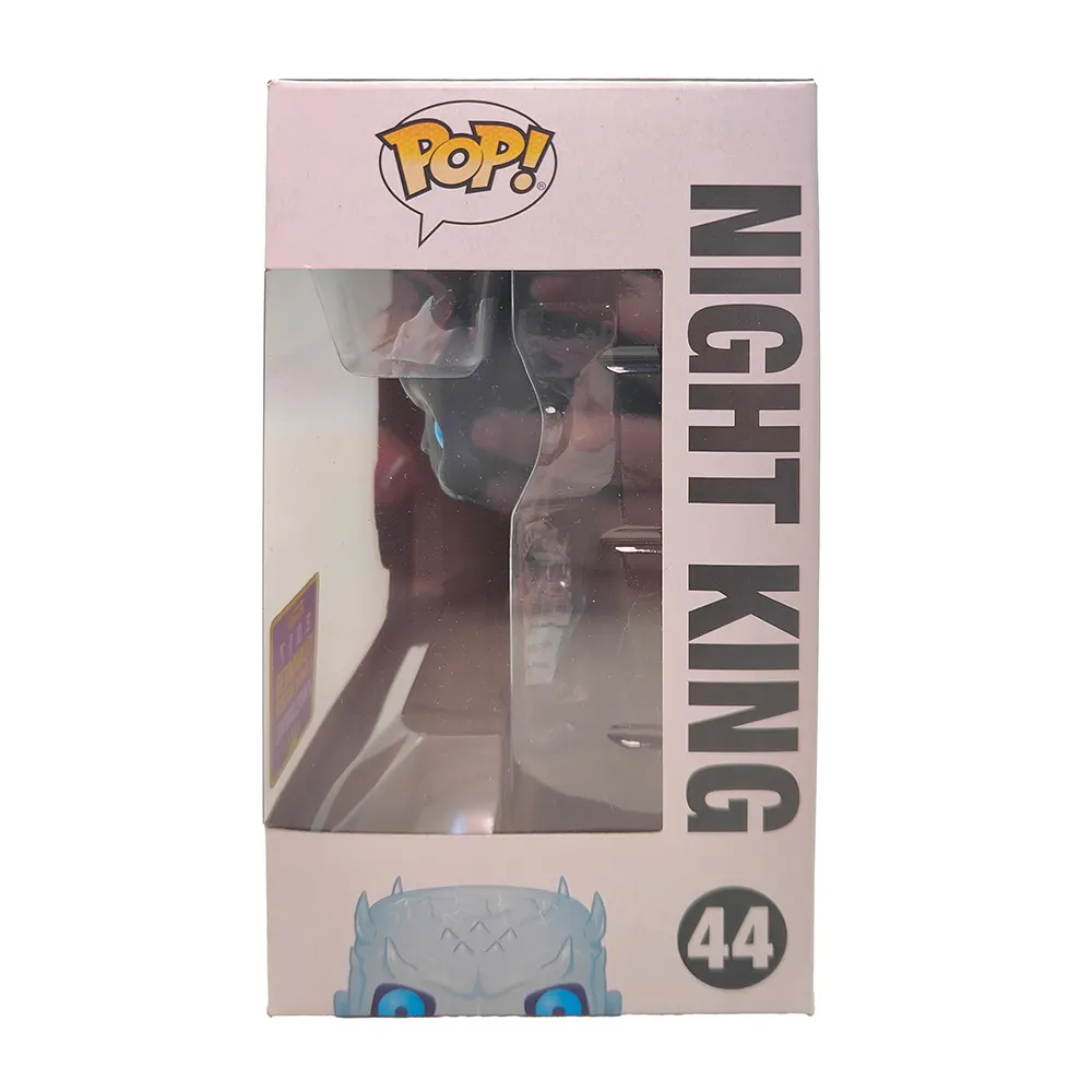 A: The box shows normal shelf wear consistent with its age, but displays well with a clear window and the exclusive sticker intact. - Q: Is this from before or after the Night King got his dragon?