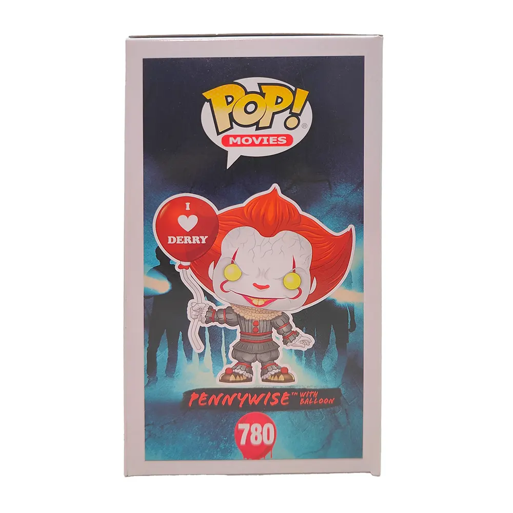 Want a balloon? This creepy Pennywise Funko POP featuring the infamous “I ❤️ Derry” red balloon brings the terrifying villain from IT Chapter Two right to your collection. Standing at 3.75 inches tall, this vinyl figure captures Bill Skarsgård’s chilling portrayal with those haunting yellow eyes and sinister grin. The detailed balloon accessory makes this one of the most recognisable Pennywise variations from the films. Complete with original box showing minimal shelf wear, this figure is perfect for horror fans looking to add a bit of Derry’s nightmare to their display!