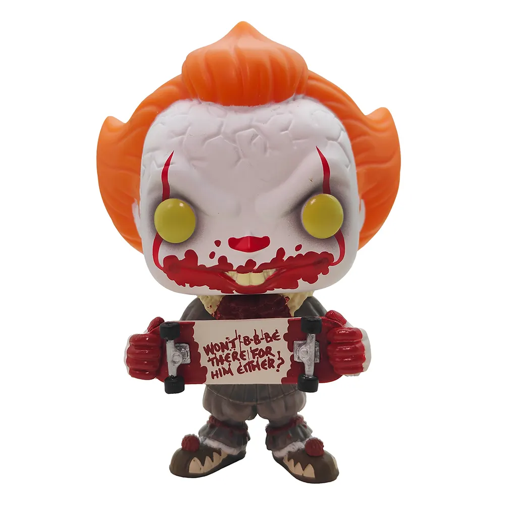 Ready to shred with the dancing clown? This Special Edition Pennywise with Skateboard Funko POP brings a grisly new twist to the terrifying villain from IT Chapter Two. Standing at 3.75 inches tall, this blood-splattered figure holds a skateboard with the chilling message “Won’t be there for him either?” while sporting those haunting yellow eyes. Complete with original box featuring the silver Special Edition sticker, this is one of the most disturbing Pennywise variants ever made—perfect for collectors who want the ultimate conversation piece from Derry’s nightmare!