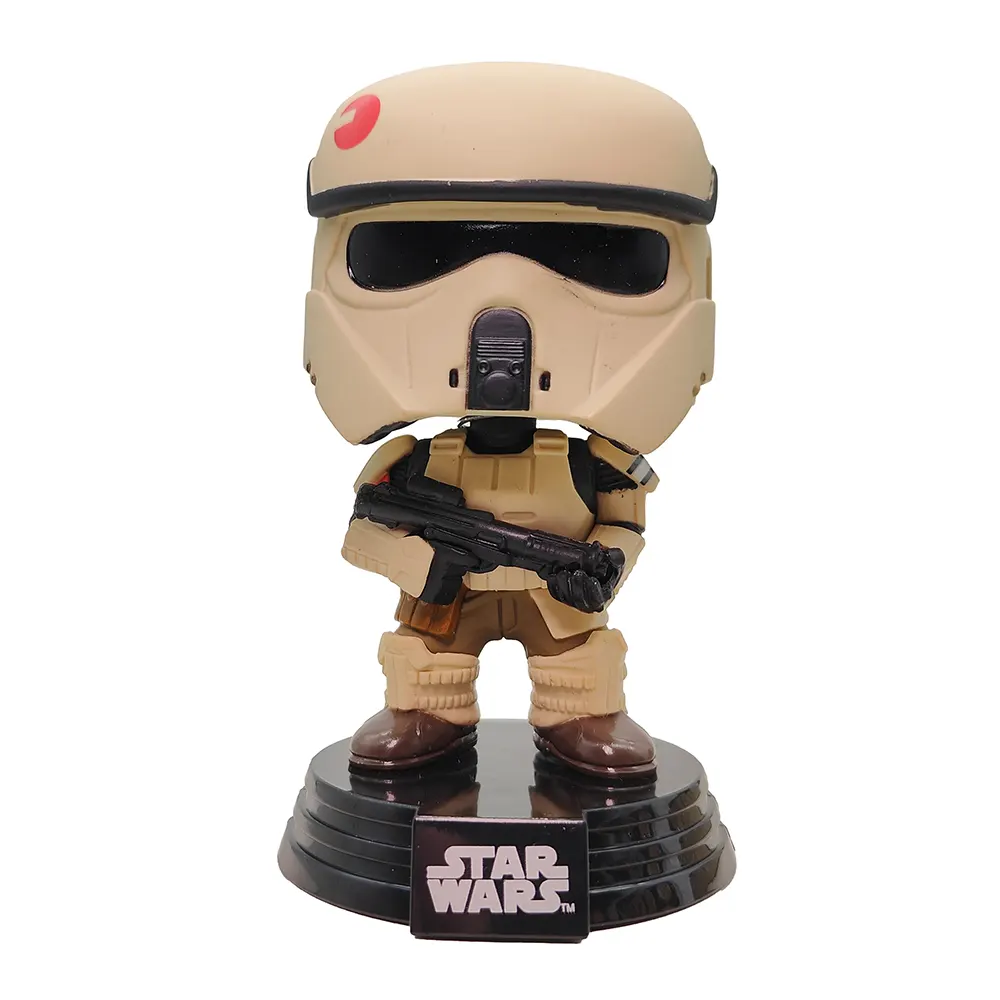 This Scarif Stormtrooper Funko Pop captures one of the most visually striking Imperial variants from Rogue One: A Star Wars Story. Unlike their snow-covered cousins from Hoth or the standard white armour of regular stormtroopers, these beach-deployed specialists sport a distinctive tan and orange colour scheme designed for the tropical paradise that housed the Empire’s most crucial data vault.