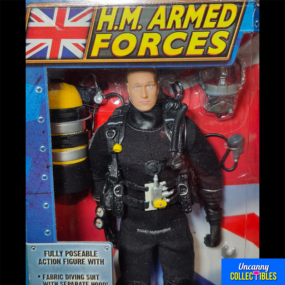 The set includes removable air tanks with face mask and a large spanner tool. It’s part of the popular HM Armed Forces collection that showcases different branches of the British military. With multiple points of articulation, you can pose the diver in various action stances for display or play.