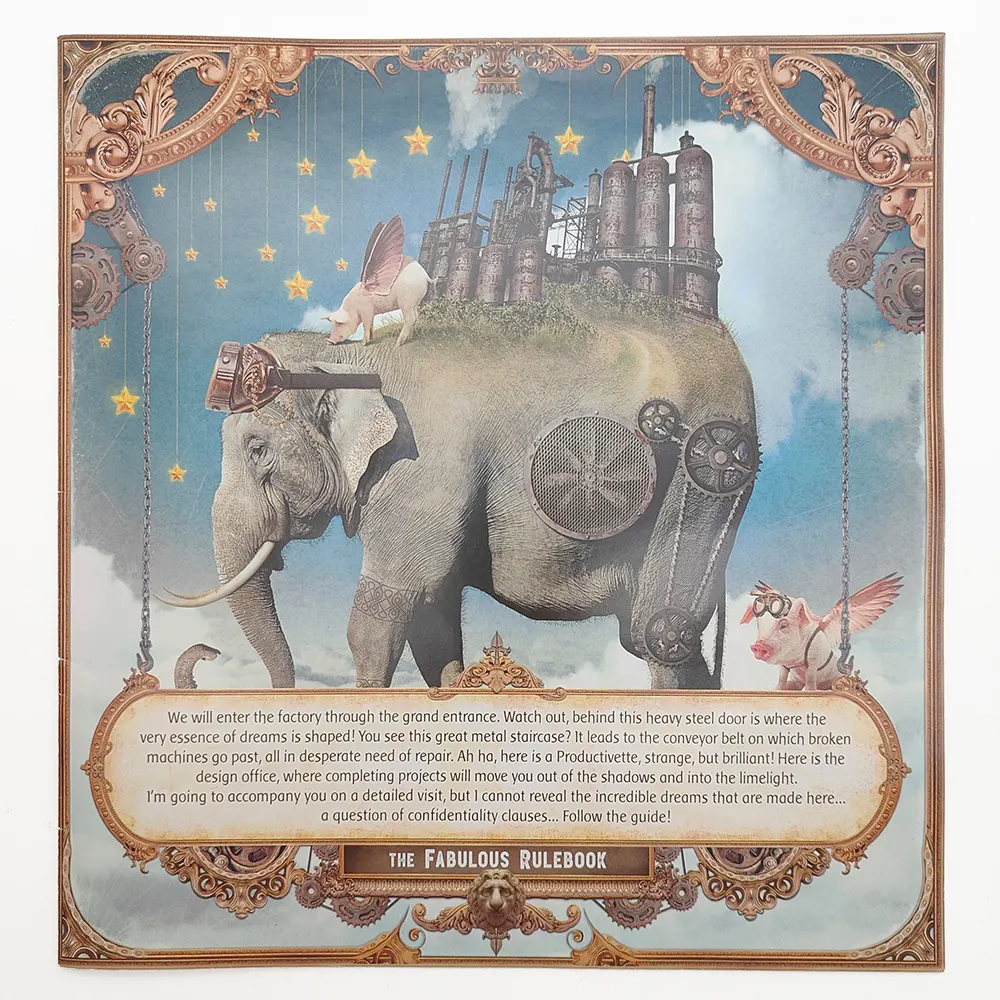 Step into the whimsical world of Imaginarium! This stunning steampunk-themed board game from Bombyx invites 2-5 players to become master machinists in a fantastical dream factory. Published in 2017, this strategy game combines resource management with stunning artwork and detailed miniatures. Complete with all components in very good condition – perfect for both casual gamers and serious collectors!