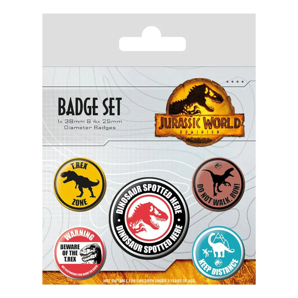 Get ready to unleash your inner dino-fan with the official Jurassic Park Dominion 5-Pack Button Badge Set! This epic collection features five high-quality badges showcasing iconic imagery from the blockbuster film. With four 2.5 cm badges and one larger 3.8 cm badge, this set is perfect for showing off your prehistoric passion on jackets, bags, or display boards!