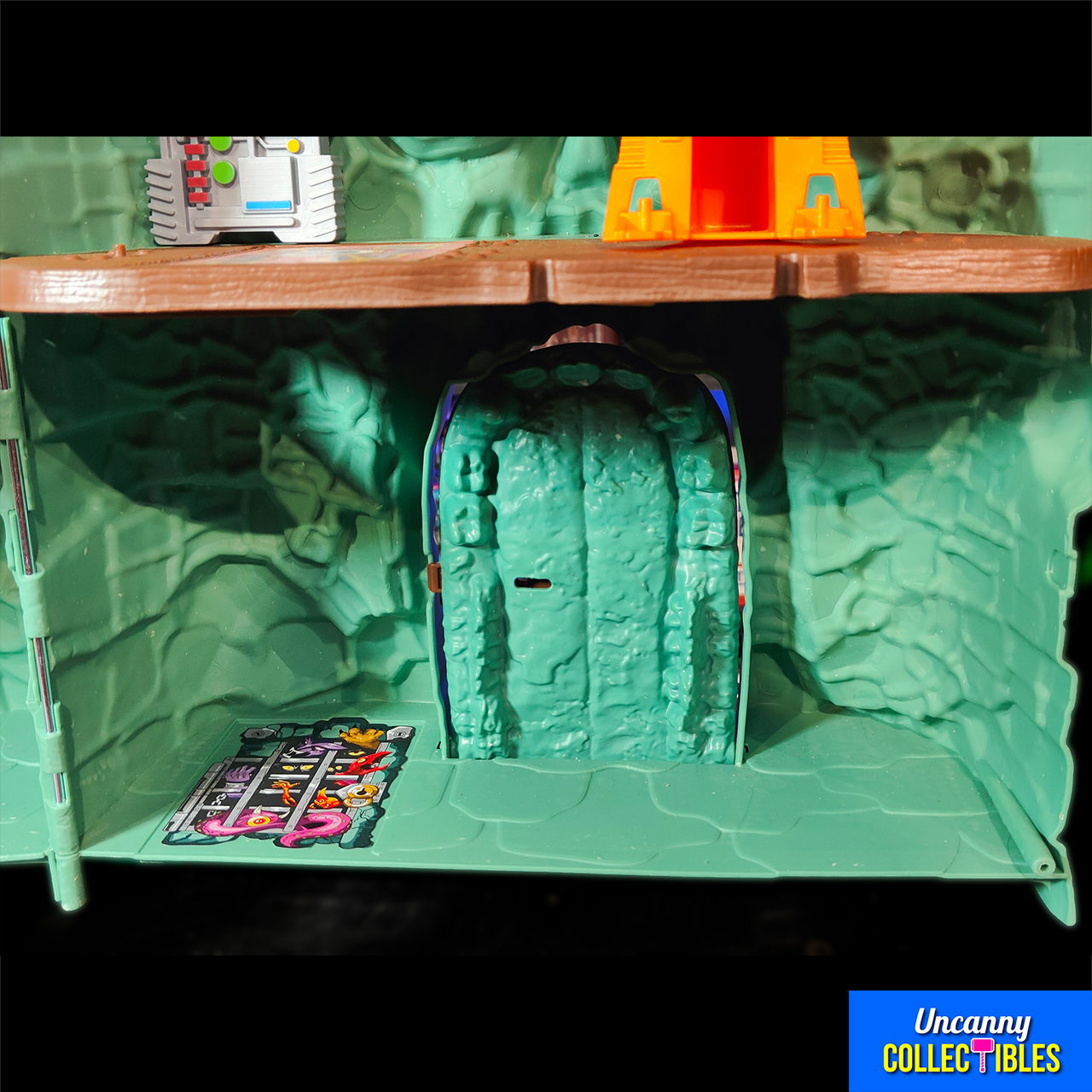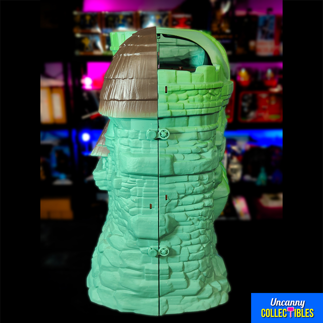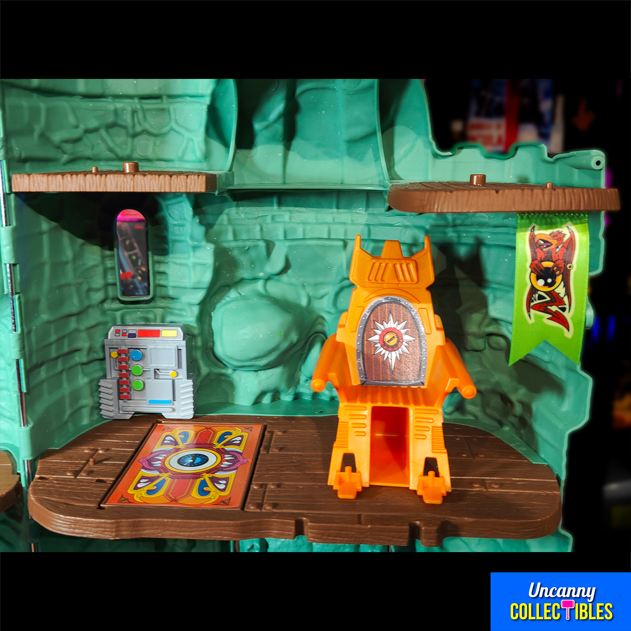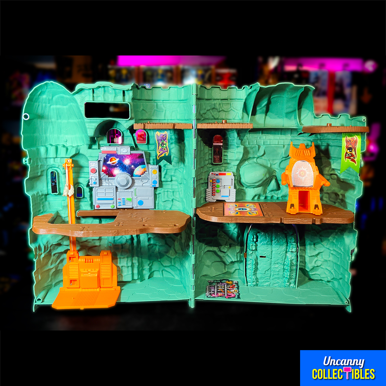 This Origins Castle Grayskull brings Eternia’s most famous landmark to your collection. With its iconic skull face and green stone walls, this playset offers both nostalgia and play value. The jaw bridge opens to reveal four detailed rooms where you can stage epic battles.