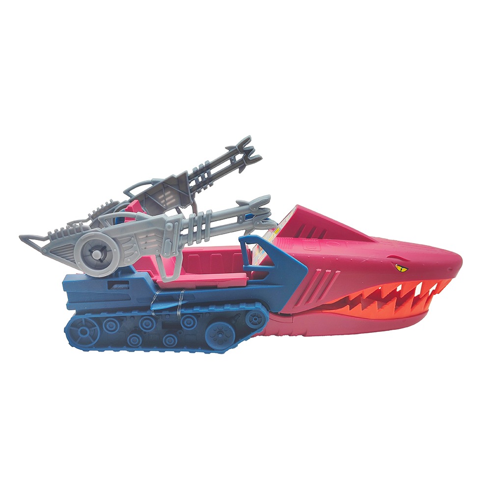 This brilliant Masters of the Universe Origins Land Shark brings one of Skeletor’s most fearsome vehicles back to life! With its distinctive blue tank treads and massive pink jaws, the Land Shark is instantly recognisable to fans of the classic MOTU line. This Origins version stays true to the original design while adding modern details and play features that both collectors and new fans will appreciate. The fearsome shark-inspired front end features chomping jaws that move up and down as the vehicle rolls across any surface—ready to gobble up any heroic warriors that get in its way!