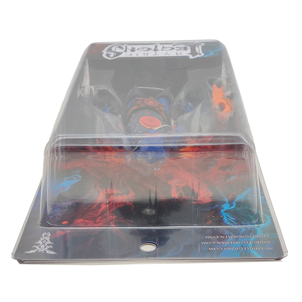 - Q: How are these packaged? A: Mythic Legions come in collector-friendly window boxes that can be opened and closed without damaging the packaging.