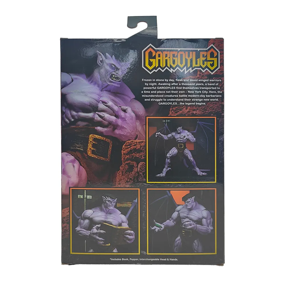 “I live again!” Bring home the mighty leader of the Manhattan Clan with this awesome NECA Ultimate Goliath figure! Standing 20 cm (8 inches) tall with huge 40 cm (16 inches) wings, this figure perfectly captures the brooding hero from the 90s cartoon we all loved as kids. This US exclusive comes factory sealed with minimal shelf wear. With swappable heads, hands, a book, and even that jalapeño pepper from that funny episode – this Goliath is ready to watch over your collection when the sun goes down!