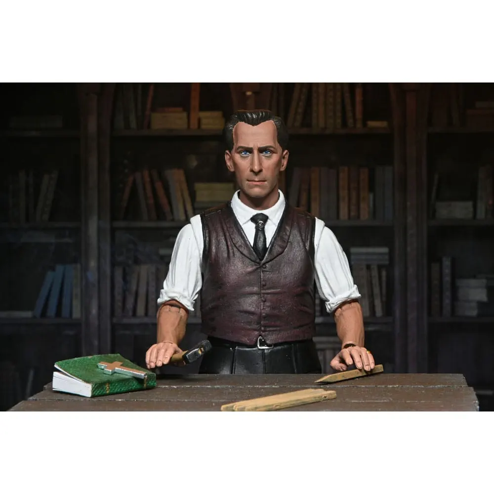 Ready the stakes and crosses! NECA’s Van Helsing figure brings the ultimate vampire hunter to your collection with all the tools needed to face the undead. This brilliant recreation of Peter Cushing’s character from the 1958 Hammer classic comes with a dead-on likeness that captures his determined gaze and stern resolve. The figure features a clever interchangeable waist system that lets you display him in either his dashing vest and shirt combo or his full-length coat for when the hunt takes him into the night.