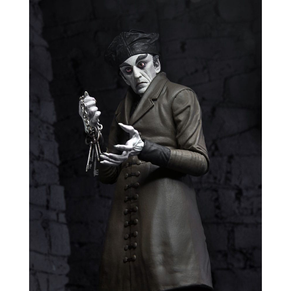 Meet Count Orlok, the ancient vampire and the main antagonist of Nosferatu, the influential masterpiece of the silent era. This NECA Ultimate action figure captures the eerie count in sensational style, with details and accessories carefully sourced from the film. This gothic figure is fully articulated and includes 3 interchangeable heads and a variety of different hands for endless poses. Accessories include a hat, five keys on a chain, a quill pen, an ink pot, a replica letter, and a bottle.