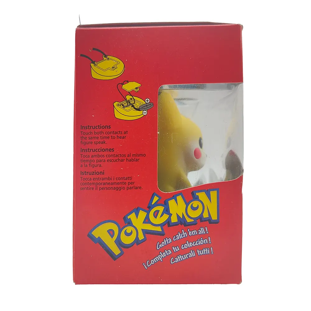 An exciting piece of Pokemon history – this is the original Hasbro Pikachu figure from 1999! This interactive 8cm figure features authentic electronic voice sounds AND light-up cheeks that bring the most famous Pokemon of all to life. Still with its original box, this pre-owned treasure is perfect for serious Pokemon collectors!