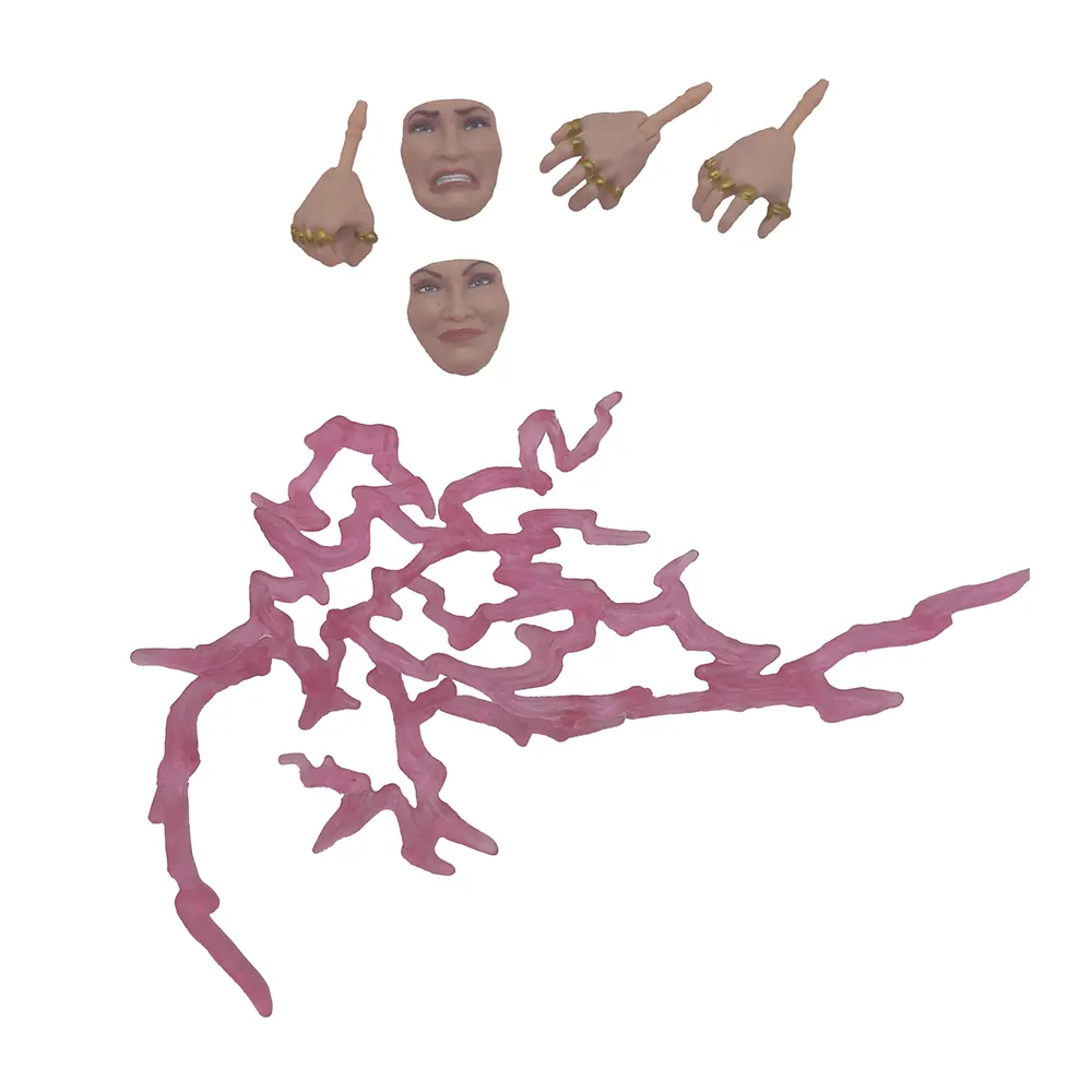 A: The figure comes with multiple face options to display Rita with her classic evil smile, her scheming expression, or her famous angry/yelling face when her plans go wrong! - Q: What are the pink translucent pieces for?