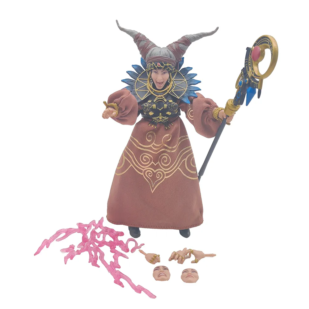 A: The staff features excellent paint detail on the crescent moon design and can be held in Rita’s hands in various positions for different spell-casting poses. - Q: What are the different facial expressions included?