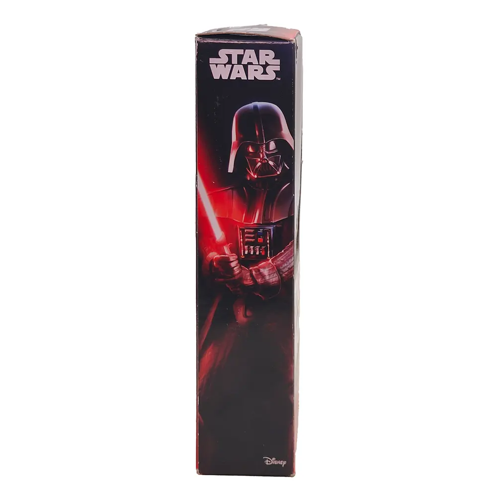 This Darth Vader figure depicts the iconic Sith Lord as seen in Return of the Jedi. The 15 cm figure features the Dark Lord’s imposing black armour, cape, and the instantly recognisable helmet that strikes fear throughout the galaxy. The chest plate includes the detailed control panel with coloured buttons and switches that monitor his life support systems.