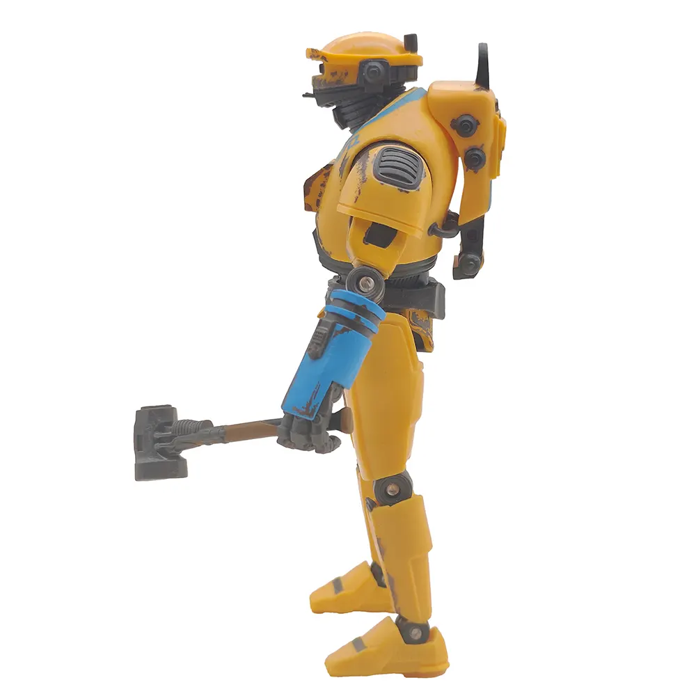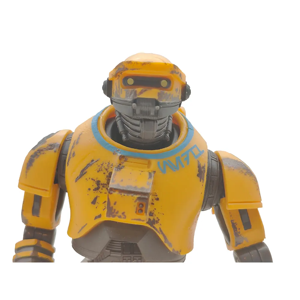 A: The weathering is quite good! There’s paint scuffing and wear marks across the yellow armour that make it look like NED-B has been working in the mines for years, just like in the show.