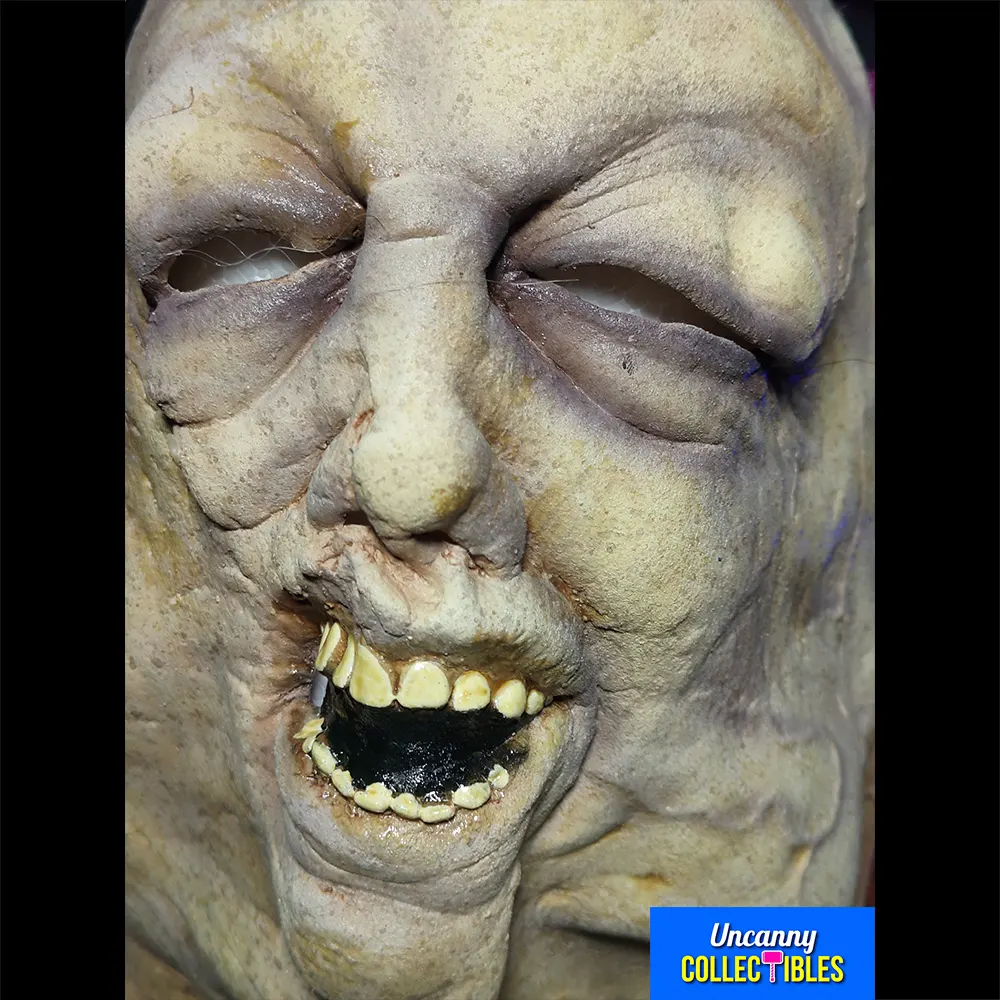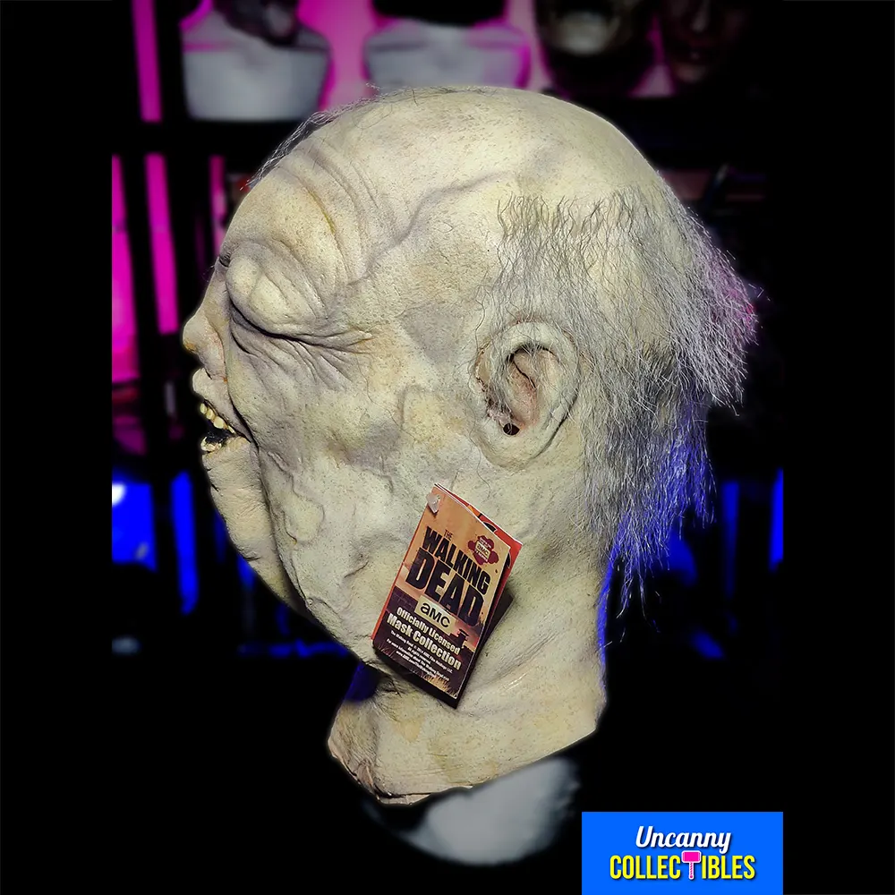 Sculpted by the talented Erich Lubatti using hundreds of screen references, this mask looks like it’s been pulled straight from the bottom of Hershel’s farm well. Every decaying detail, from its bloated features to its watery gaze, has been meticulously crafted to maximise horror. The sickly pallor, the sunken eyes, and the gaping maw are all recreated with stomach-churning accuracy.